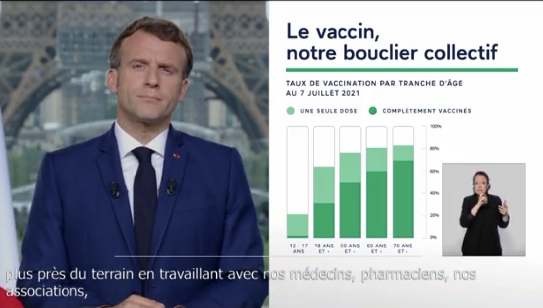 Cependant la France fait face à "une reprise forte de l'épidémie", dûe notamment au variant Delta. Le président a donc annoncé des mesures fortes : restrictions sanitaires et projets politiques pour la suite.