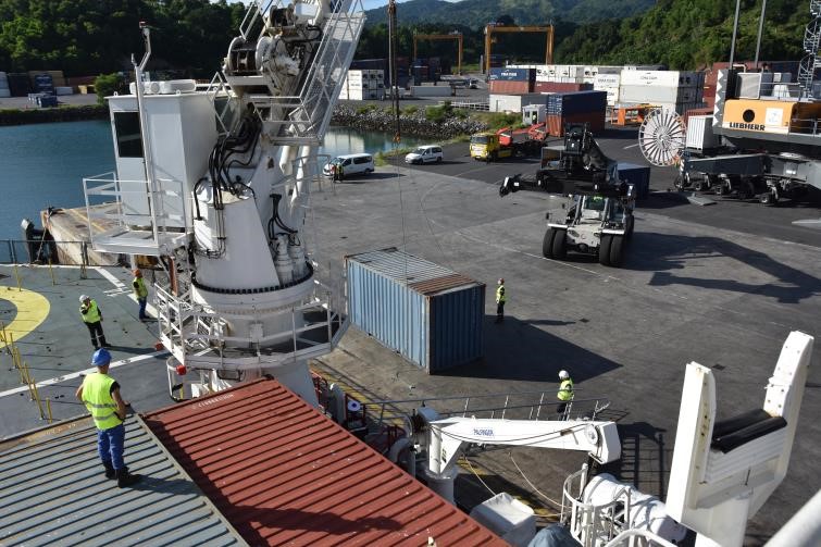 Après un transit de 3 jours, L’Astrolabe a accosté à Longoni (Mayotte), vendredi 15 mai et a débuté ses opérations logistiques. Grâce à la bonne coordination avec la préfecture de Mayotte et les acteurs logistiques locaux, l’ensemble des opérations de déchargement et de rechargement a pu être conduit en moins de 7 heures avant de repartir vers La Réunion.