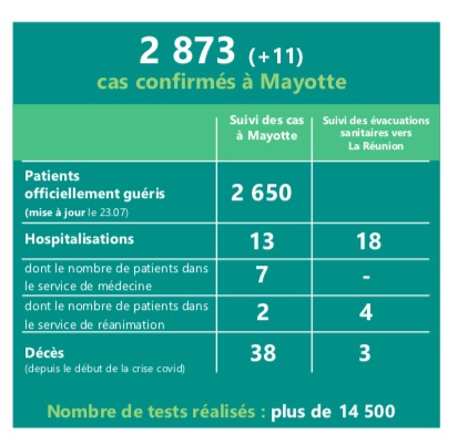 Ce vendredi 24 juillet 2020, 11 nouveaux de Covid-19 ont été confirmés à Mayotte. Au total, ce sont 2.873 personnes qui ont été contaminées depuis le début de l'épidémie. 38 personnes sont décédées, dont trois à La Réunion suite à des évacuations sanitaires. Actuellement, 13 personnes sont toujours hospitalisées à Mayotte, et trois Mahorais le sont aussi à La Réunion. (Photo d'illustration rb/www.ipreunion.com)