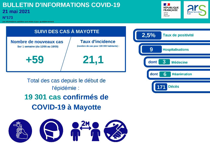 Du 12 mai au 18 mai 2021, 59 nouveaux cas de Covid-19 ont été enregistrés à Mayotte. Le taux d'incidence est de 21,1%, bien en-dessous du seuil d'alerte fixé à 50 cas pour 100.000 habitantsNeuf personnes sont hospitalisées, dont six en réanimation (Photo d'illustration rb/www.ipreunion.com)