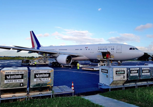 "Je démarre une visite officielle pour 2 jours. J'apporte avec moi 6,5 tonnes de fret sanitaire, 1 automate de test, 9 respirateurs. Ce déplacement est placé sous le signe de la protection sanitaire, il ne faut pas baisser la garde face au Covid-19" a commenté Annick Girardin sur son compte Twitter.