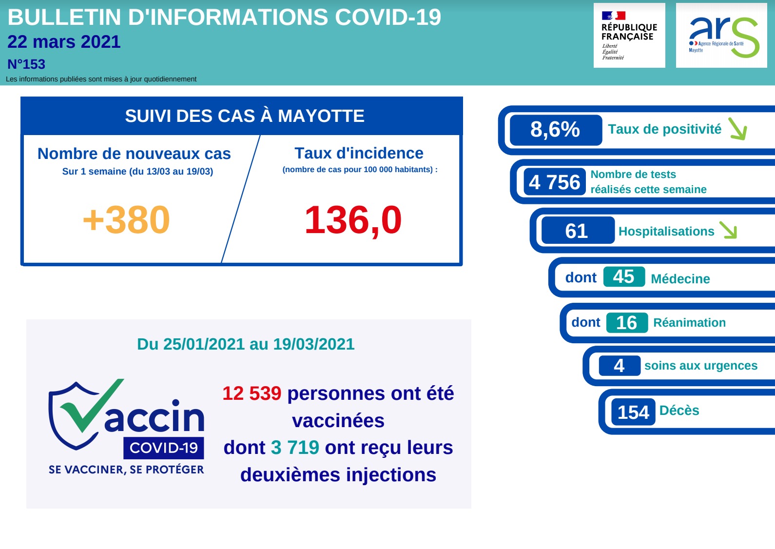 Voici le bilan de l'ARS de Mayotte sur les indicateurs du Covid-19 :