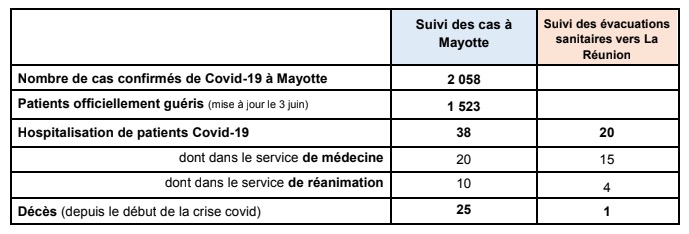 Le nouveau bilan sanitaire de l'île de Mayotte est tombé. En 24 heures, 65 nouveaux cas de Covid-19 ont été enregistrés. La barre des 2.000 cas est donc franchie puisque Mayotte affiche 2.058 cas en tout depuis le début de l'épidémie. 36 personnes sont hospitalisées. Un nouveau décès est à déplorer faisant passer le total à 25 personnes ayant succombé au virus. (Photo d'illustration rb/www.ipreunion.com)
