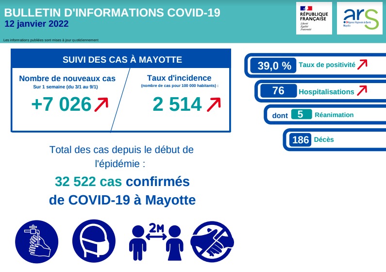 Au cours de la semaine du 3 janvier au 9 janvier 2022, 7.026 cas de Covid-19 confirmés ont été identifiés parmi les patients domiciliés à Mayotte, faisant passer le taux d'incidence à 2.514 cas pour 100.000 habitants indique l'ARS de Mayotte. Nous publions ici leur communiqué (Photo d'illustration rb/www.ipreunion.com)