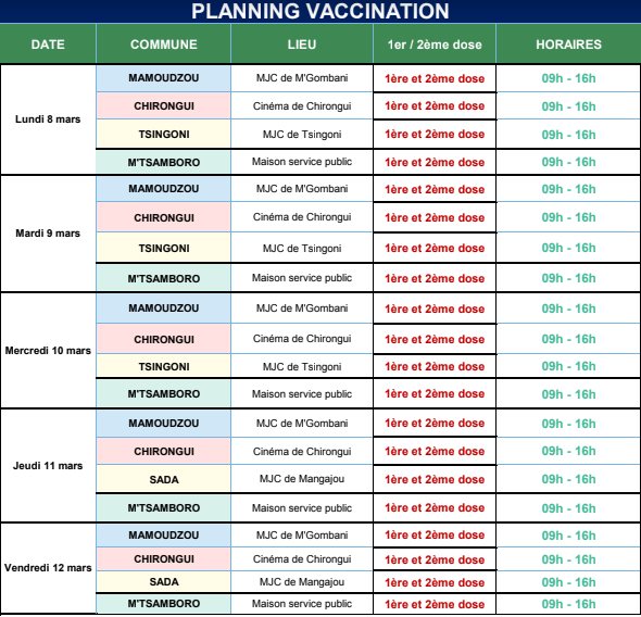 Découvrez les plannings de vaccinations dans l'île :