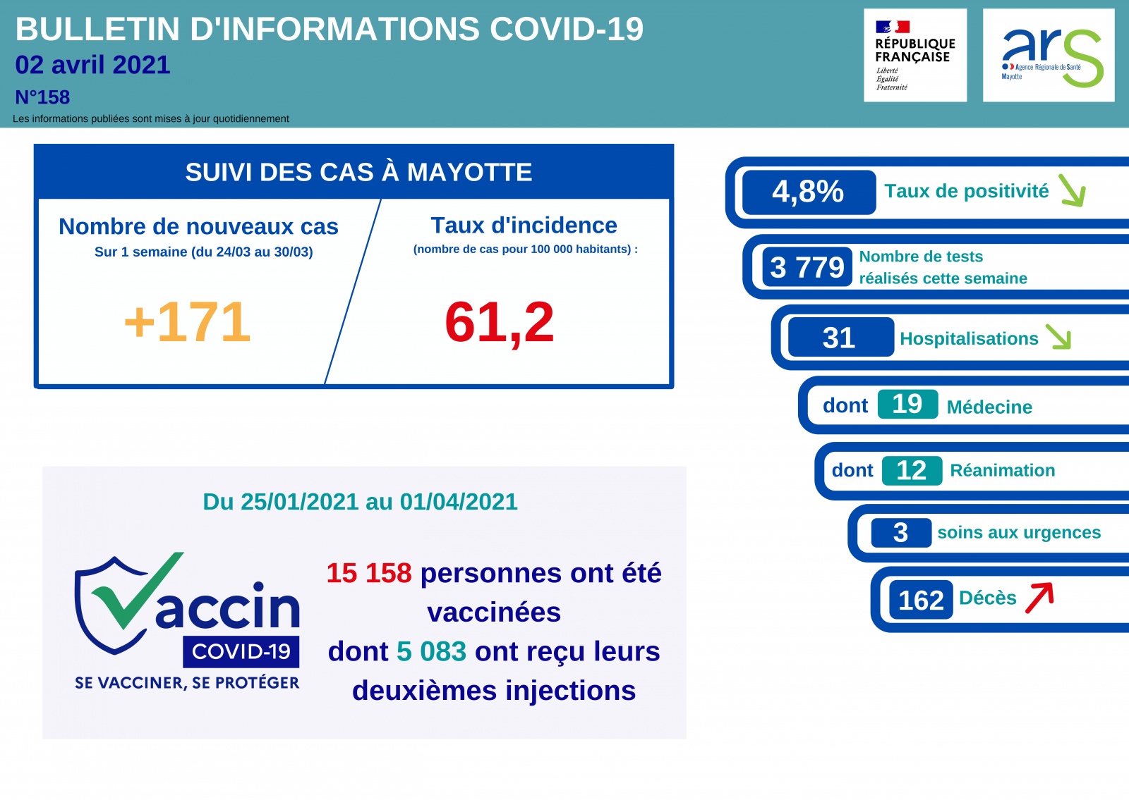 Ce vendredi 2 avril 2021, les autorités sanitaires de Mayotte annoncent un nouveau décès lié au covid-19. Il s'agit d'une personne de 64 ans, hospitalisée en réanimation. Ce décès porte "à 162 le total de décès liés au coronavirus depuis le début de l'épidémie (dont 27 à La Réunion après évacuations sanitaires)" note l'Agence régionale de santé de Mayotte. Dès ce samedi la vaccination sera ouverte à toutes les personnes âgées de plus de 18 ans dans les six centres de l'île (Photo d'illustration rb/www.ipreunion.com)