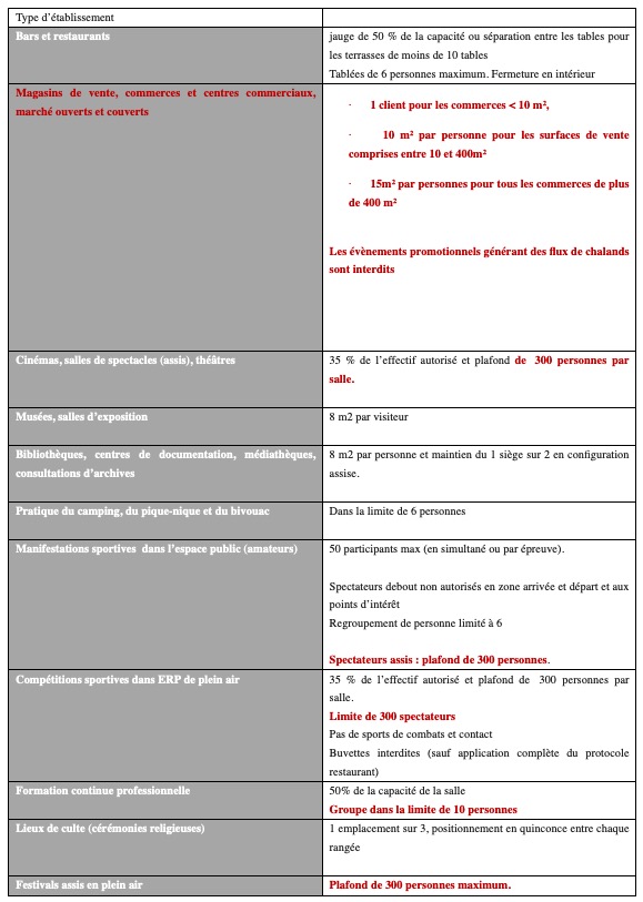 Aucun événement en dehors des manifestations revendicatives qui relèvent d’un cadre juridique particulier ne peut ainsi dépasser 300 personnes (contre 800 au 1000 en métropole selon les lieux).