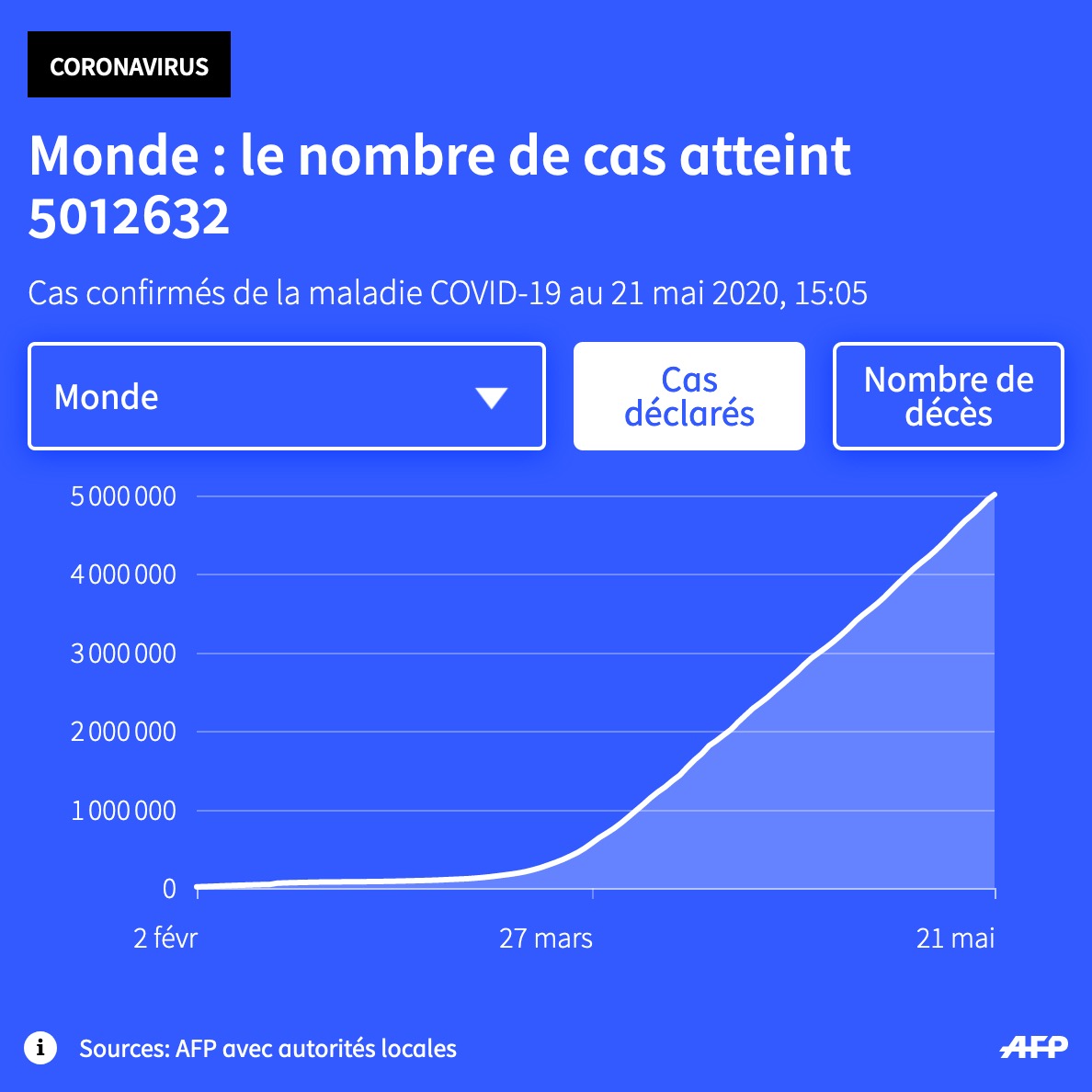 Le Covid-19 a touché plus de 5 millions de personnes à travers le monde. Un nouveau cap symbolique a donc été franchi. 188 pays sont touchés par la pandémie. Le virus a également tué plus de 328.000 personnes.
