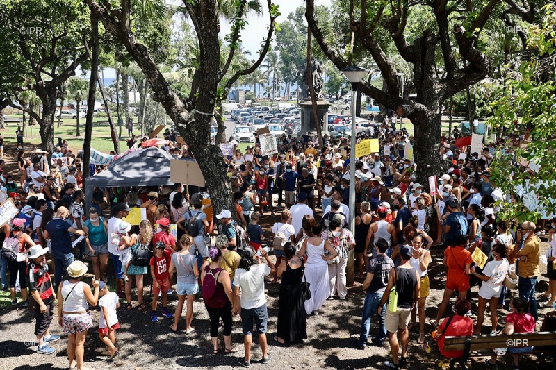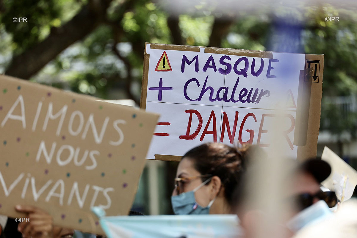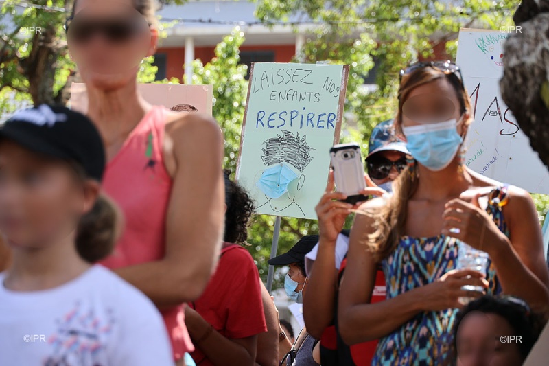 Un appel au rassemblement devant la préfecture ce mercredi 10 février 2021 a été lancé par le collectif Parents 974 pour protester contre l'obligation du port du masque à l'école primaire, de CP au CM2, depuis ce lundi 8 février. Pour le collectif, "une telle mesure n'est en rien justifiée par la situation épidémiologique sur l'île de la Réunion qui est actuellement stagnante depuis plusieurs semaines". Plusieurs centaines de personnes sont rassemblées devant la préfecture et les militants demandent aux rectorat d'annuler la décision du port du masque pour les 6-10 ans. Un référé liberté a été déposé au tribunal administratif ce mardi. (Photos rb/www.ipreunion.com)