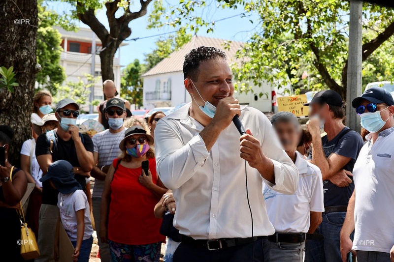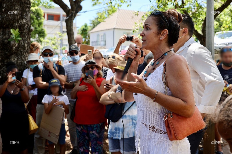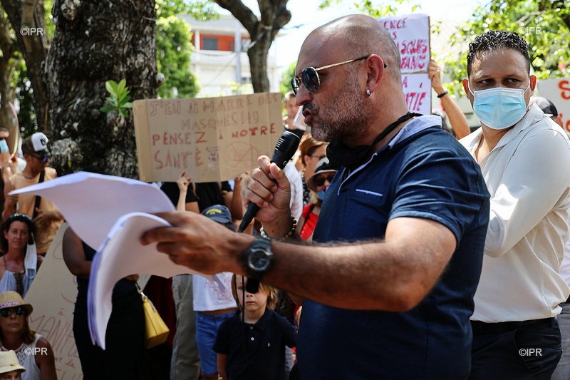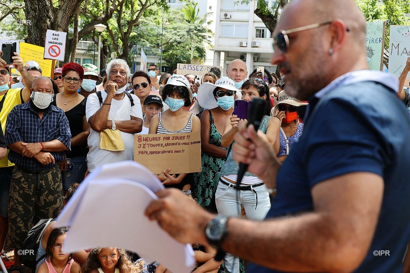L'avocat du collectif prend la parole. Il affirme que le masque est dangereux pour les enfants et que la chaleur à La Réunion ne permet pas de porter le masque. "C'est du n'importe quoi, et le pire c'est quand un recteur fait du droit. Y a plus de justice en France."