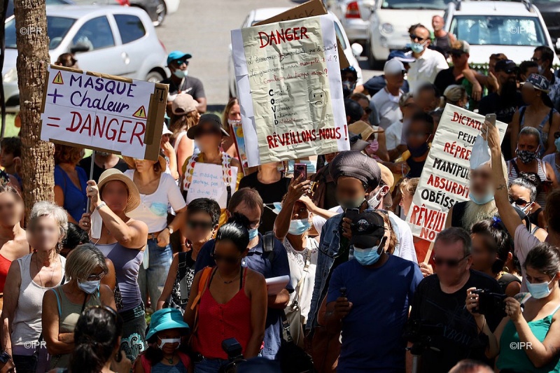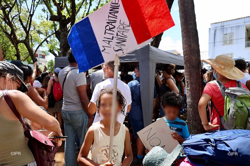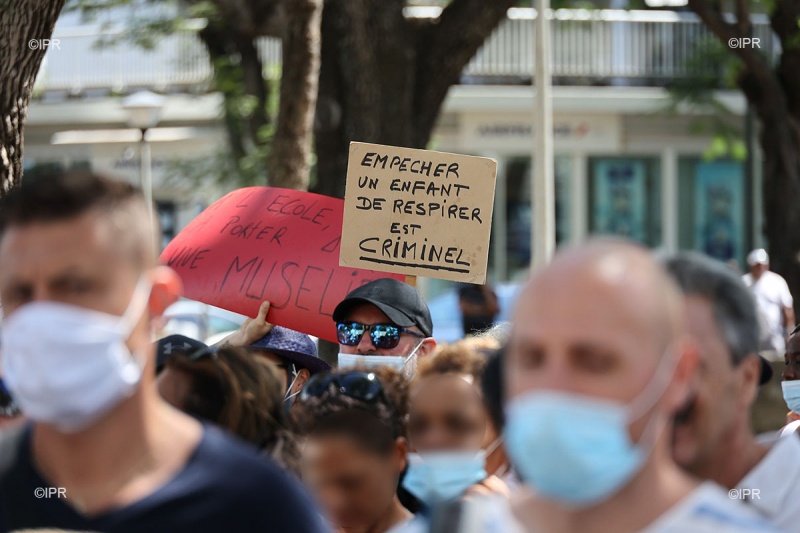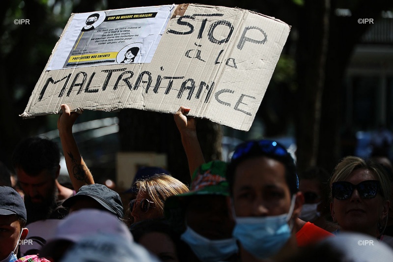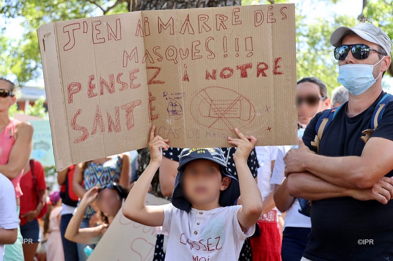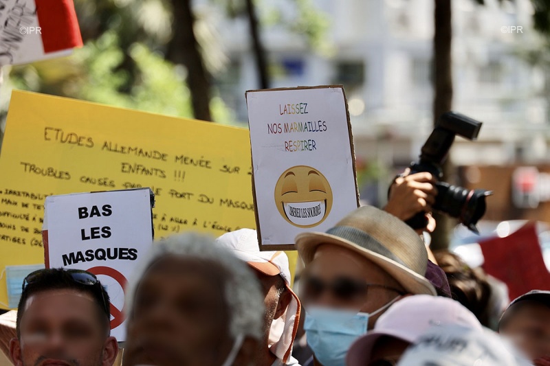 Beaucoup de monde ce mercredi devant la préfecture de Saint-Denis. On compte plusieurs centaines de personnes venues s'opposer au port du masque pour les enfants dès 6 ans à l'école.