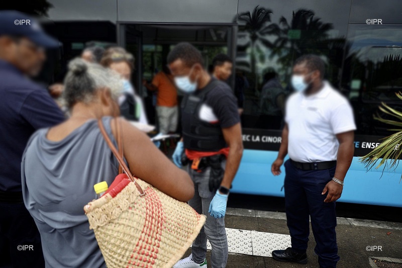 Ce mardi matin 31 mars 2020, les forces de l'ordre et les contrôleurs du réseau de bus Citalis à Saint-Denis ont mené une opération de contrôle des attestations de sortie des voyageurs. L'opération devrait durer toute la journée, et sera reconduite régulièrement sur le réseau afin de s'assurer que les passagers sont tous en règle. Des contraventions ont déjà été données lors de ce premier contrôle de la journée. Pour rappel, il n'est autorisé de sortir que pour se rendre à son travail ou à une consultation médicale, effectuer des achats nécessaires ou porter assistance à une personne vulnérable. Des sorties d'une heure sont autorisées pour pratiquer une activité sportive, sortir ses enfants ou ses animaux de compagnie, dans un périmètre d'un kilomètre autour de chez soi. (Photo rb/www.ipreunion.com)