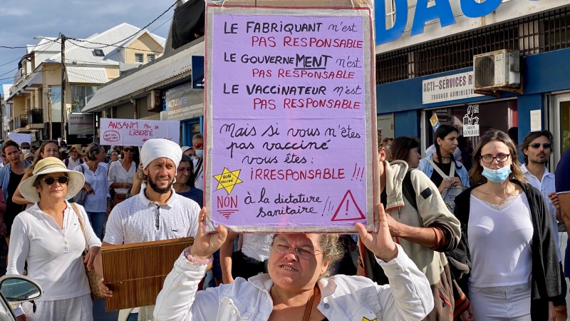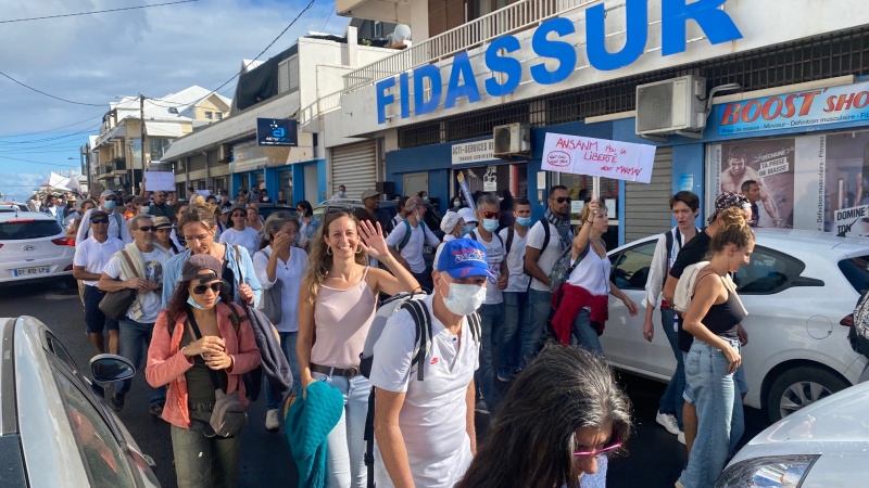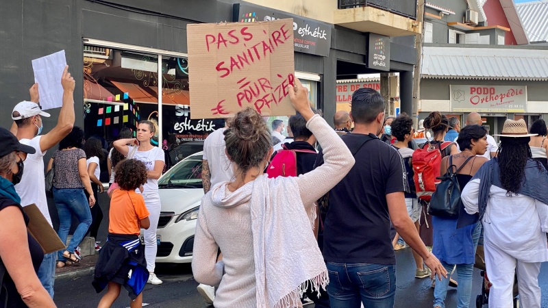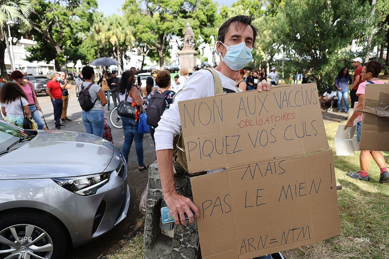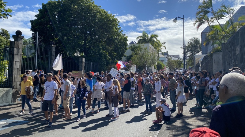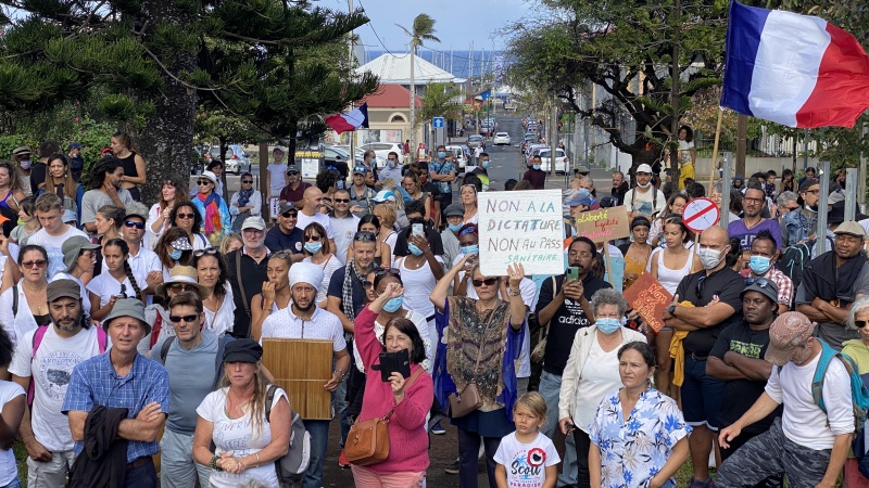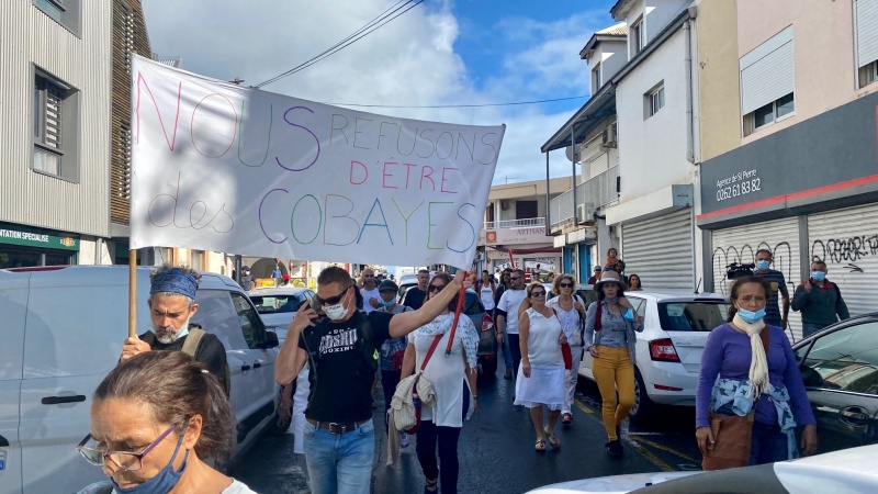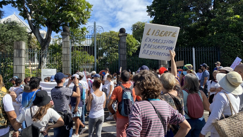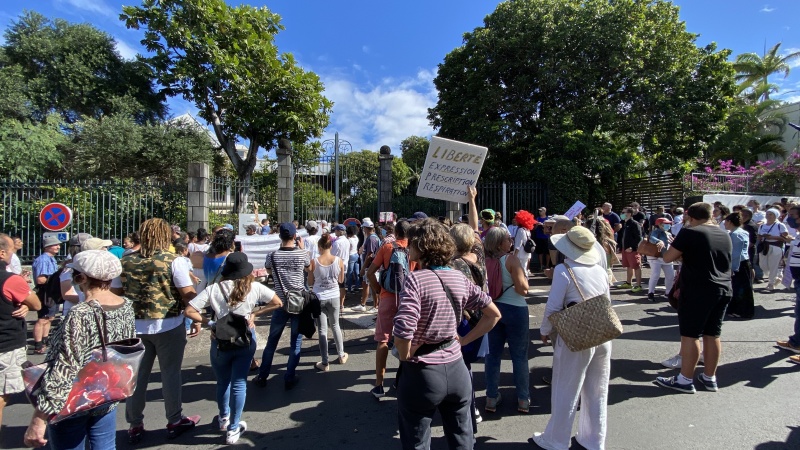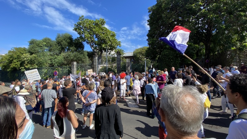 Une autre manifestation est prévue à partir de 14h devant la préfecture de Saint-Denis. Les participant.e.s protestent contre les annonces d'Emmanuel Macron notamment la mise en place d'un pass sanitaire dès la fin juillet et l'obligation vaccinale pour les soignant.e.s