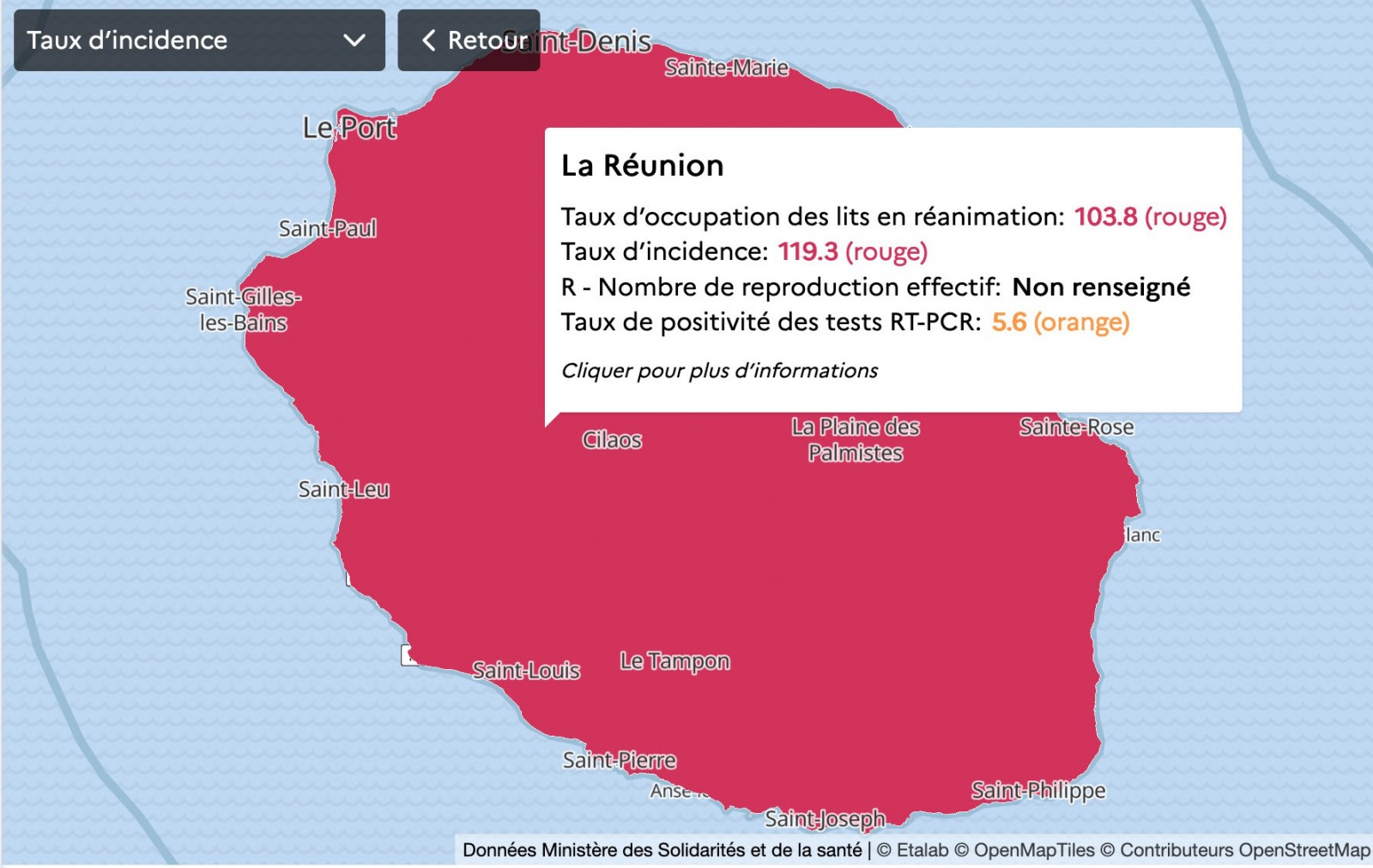 Le taux d'incidence à la Run est à 124,89 au 23 mars (données affichées le 26/03 et remontant au 23/03) !