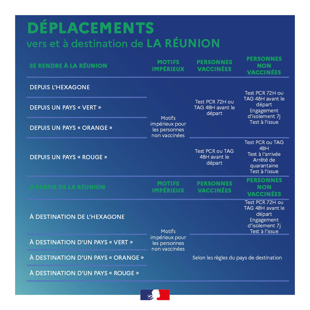 Selon le ministère des Outre-mer, le test PCR négatif est toujours demandé dans le sens Hexagone - Réunion pour le moment. Les tests antigéniques de moins de 48h sont acceptés. Il en va de même pour les pays classés "rouges" par la France en raison de la situation sanitaire sur place.