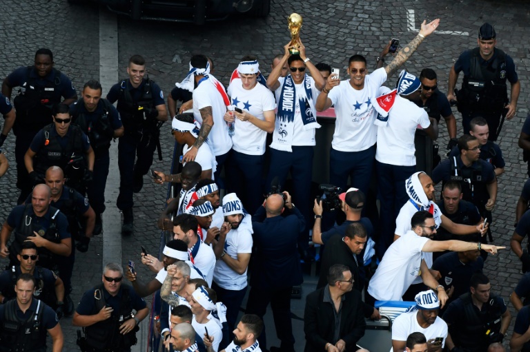 Cette fois, le bus n'a pas eu à se frayer un passage. L'itinéraire avait été balisé de barrières pour contenir l'impressionnante foule venue acclamer ses champions, vainqueurs la veille de la Croatie (4-2) au stade Loujniki de Moscou. Selon le ministère de l'Intérieur, près de 2.000 policiers et gendarmes et 400 personnels de secours ont été mobilisés pour assurer le bon déroulement de la journée.