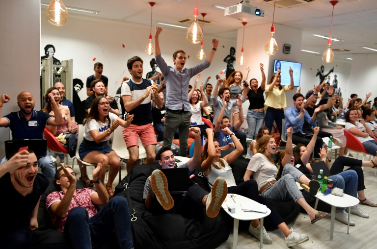 Quelques dizaines d'employés du siège parisien de la société de commerce en ligne Rakuten (anciennement PriceMinister) se sont ainsi installés face à trois très grands écrans, entre la machine à café et une table couverte de petits fours spécialement commandés pour l'occasion.