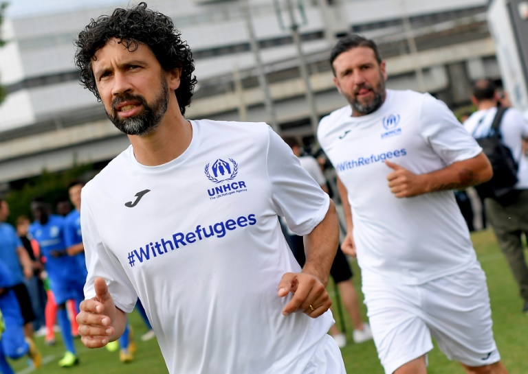 C'était la seconde édition de ce match baptisé #WithRefugees ("Avec les réfugiés") sous la forme d'une rencontre entre anciens champions du ballon rond et jeunes migrants, organisé dans le cadre de la journée mondiale des réfugiés célébrée le 20 juin.