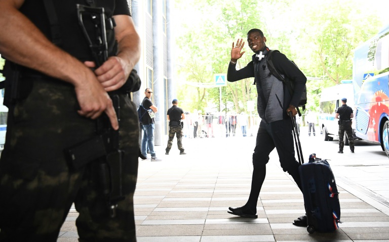 Les Bleus sont arrivés à leur hôtel de Moscou samedi vers 12h20 (11h20 françaises), à la veille de leur finale de Coupe du monde contre la Croatie.