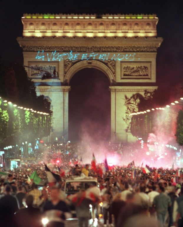 Gimmicks et flashs de l'épopée imprègnent encore la mémoire collective, l'entêtant tube de Gloria Gaynor "I Will Survive" revisité par le Hermes House Band, le baiser de Laurent Blanc sur le crâne chauve de Fabien Barthez, la pose hagarde de Lilian Thuram en demi-finale, la Une de L'Equipe "Pour l'éternité" et bien sûr "et un, et deux, et trois zé-ro!" en finale contre le Brésil après les deux buts de la tête de Zinédine Zidane, héros d'un soir devenu "Zizou", icône absolue.
