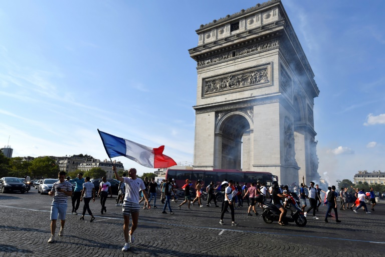 Dès le coup de sifflet final de la victoire des "Bleus" sur l'Uruguay (2-0) en quart de finale, un concert de klaxons a retenti et les supporters français ont commencé à affluer au milieu des touristes sur la plus célèbre avenue de la capitale, a constaté une journaliste de l'AFP.
