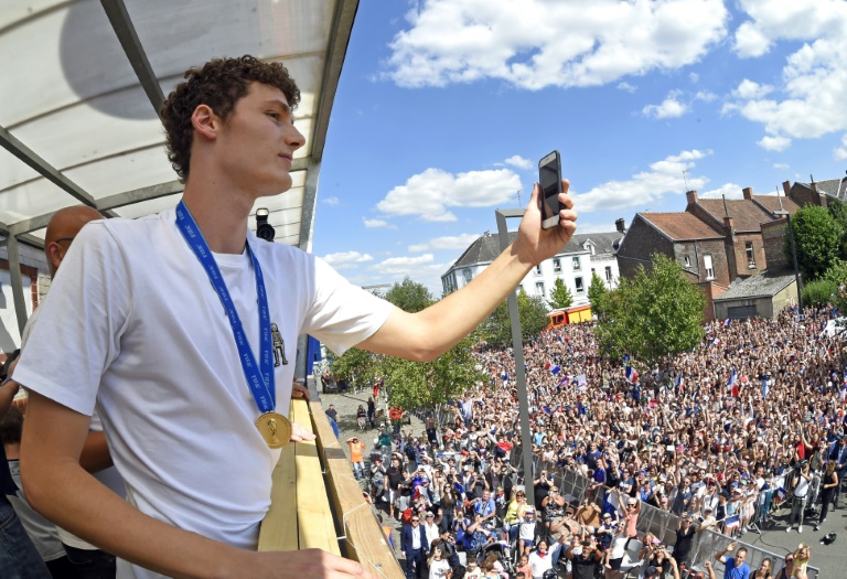 "Benjamin Pavard, je ne crois pas que vous connaissez. Il sort de nulle part, une frappe de bâtard, on a Benjamin Pavard", hurlaient à tue-tête des centaines d'admirateurs réunis devant l'hôtel de ville, sur la façade duquel trône un immense drapeau tricolore d'une quinzaine de mètres de long.