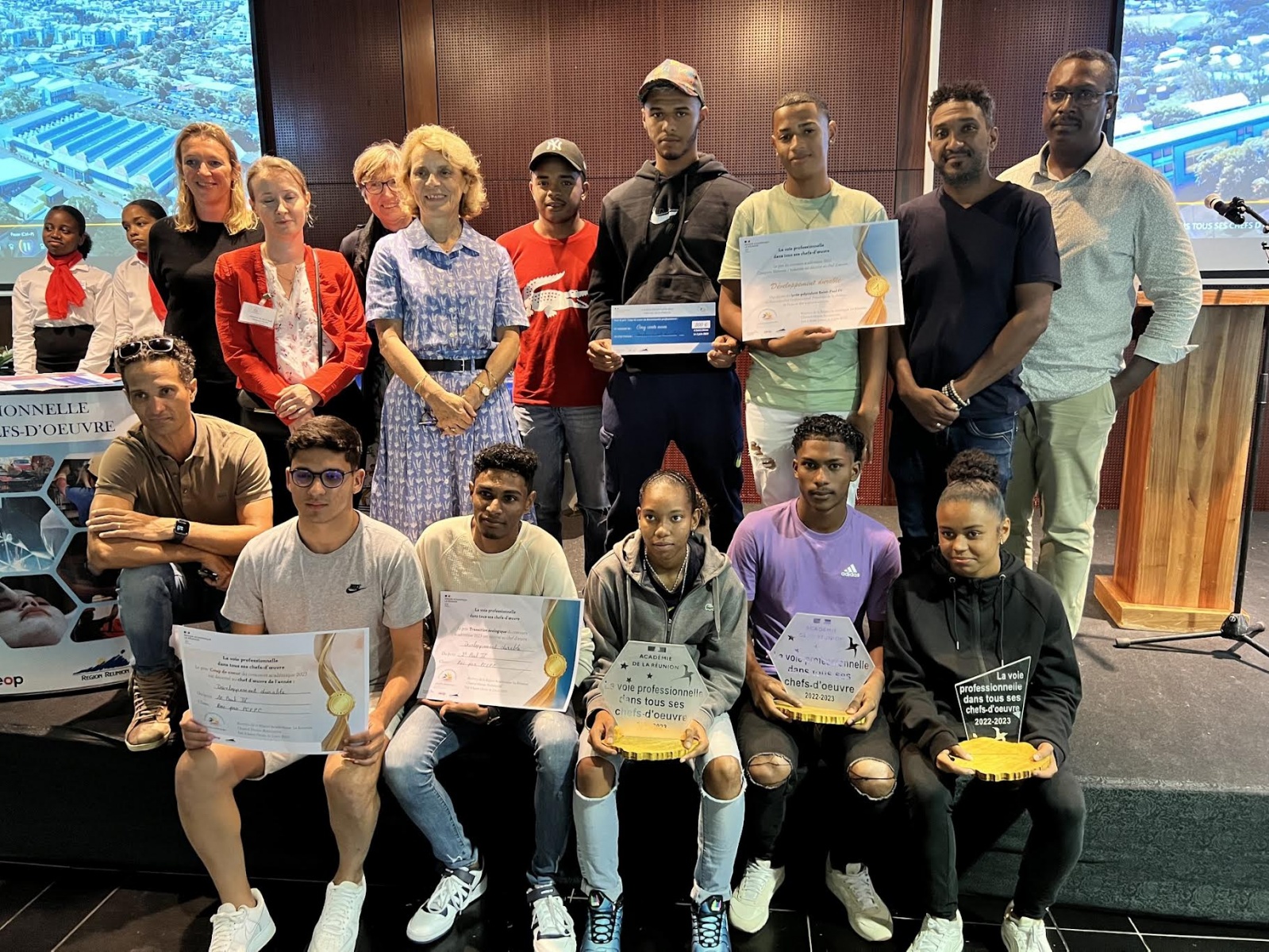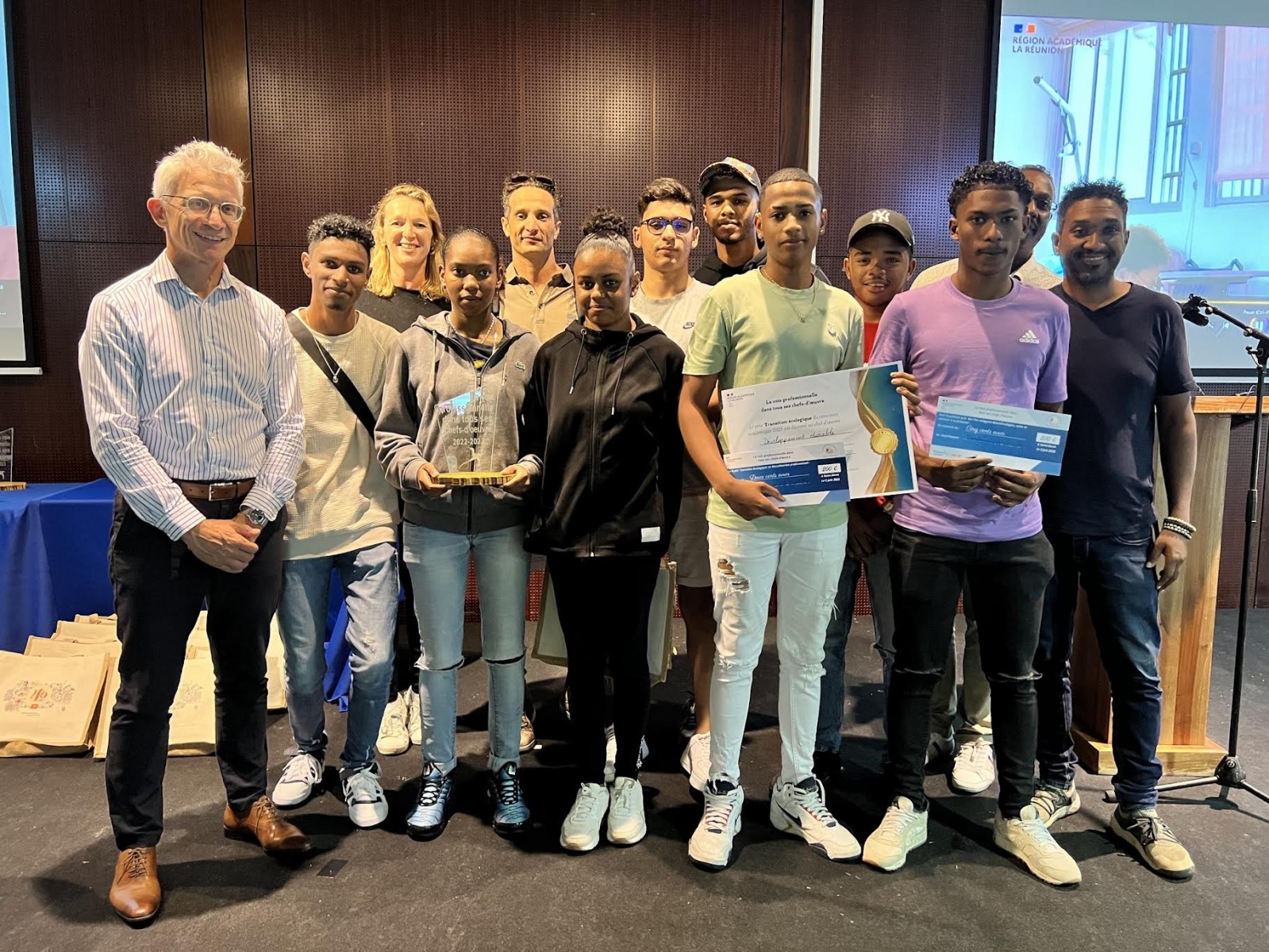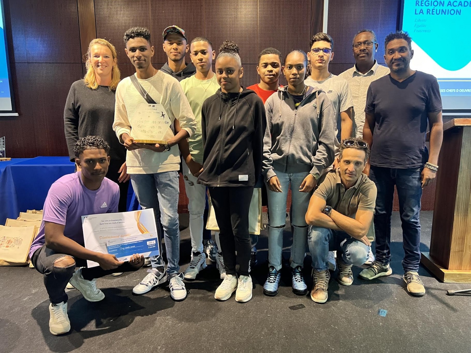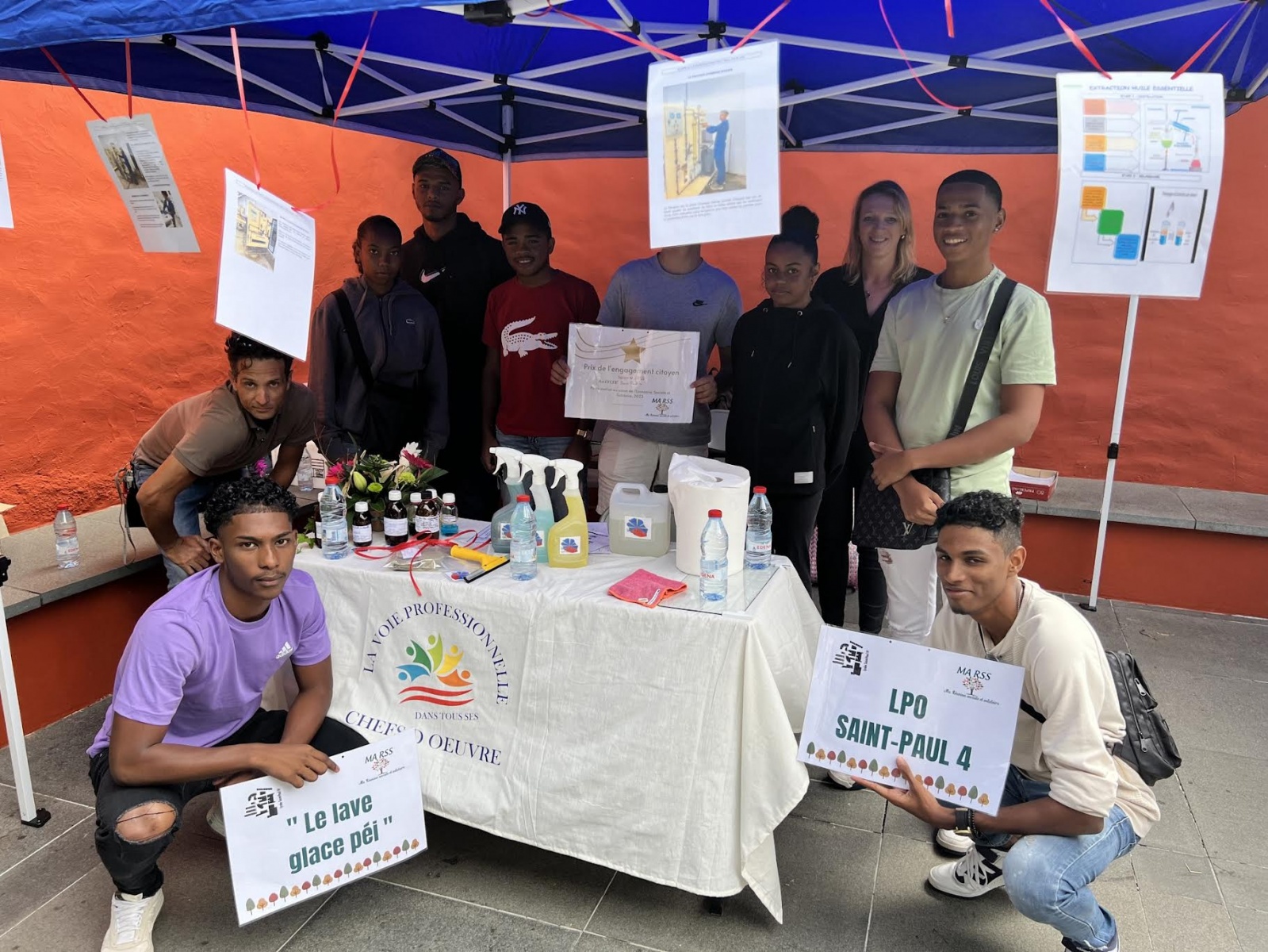 Les élèves du Lycée Saint Paul 4 sont extrêmement fiers des résultats obtenus et de la reconnaissance pour leur projet remarquable, "lave glace péï" fabriqué à partir de l’eau de pluie traitée. Leur succès dans le concours académique des chefs-d'œuvre, où ils ont remporté le 1er prix, le prix coup de cœur et le prix de la transition écologique, est une source de grande satisfaction pour eux (Photo lycée Saint Paul 4)
