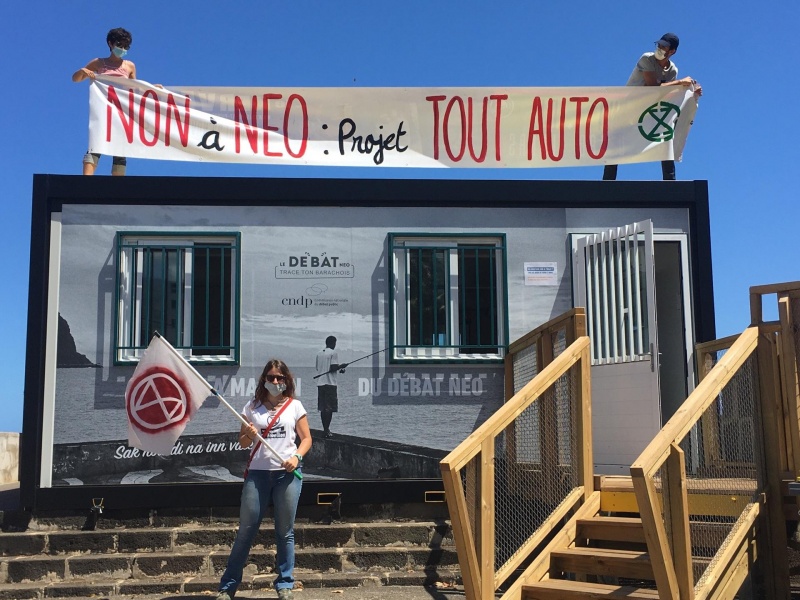 A l'occasion du débat public en cours, Extinction Rébellion souhaite sensibiliser la population et affirmer son opposition au projet de Nouvelle Entrée Ouest (NEO) porté par la Région, la CINOR et la Ville de Saint-Denis. Le projet NEO consiste essentiellement à élargir et enfouir la route nationale au niveau du Barachois pour un coût colossal évalué entre 217 et 618 millions d'euros selon les solutions proposées. D'après les maîtres d'ouvrages eux mêmes, il faut s'attendre malgré ce projet à une augmentation de l'usage de l'automobile alors qu'il est annoncé comme devant répondre aux problèmes de circulation en ville... (Photo XR Réunion)