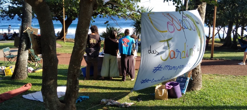 Ce dimanche 4 juillet, le Collectif des Usagers des Jardins de Manapany était à Grand Anse pour informer la population des projets d'ampleurs prévus dans la baie voisine: Manapany les Bains. (Photo : Collectif des Usagers des Jardins de Manapany)