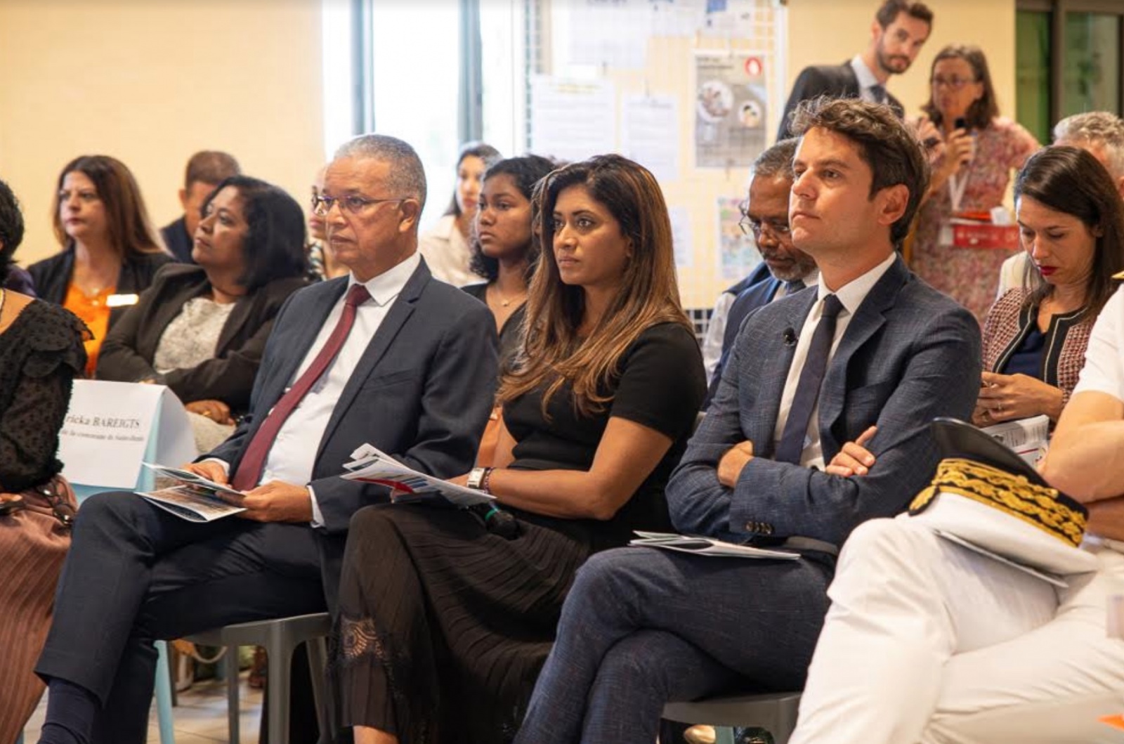 Dans l’après-midi, le Président Cyrille Melchior a conduit les ministres dans un second collège, Guy-Môquet à Saint-Benoît. En présence des conseillères départementales Sophie Arzal, Sabrina Tionohoué et de Nassimah Dindar, sénatrice, les deux ministres ont assisté à un cours de Sciences et vie de la Terre dédié au développement durable. Ils ont également participé à un débat avec les membres de la « Cité éducative » de Saint-Benoit. Gabriel Attal y a annoncé une enveloppe de 500 millions d’euros dédiée à la rénovation du bâti scolaire. Cyrille Melchior a, lui, évoqué la reconstruction du collège de la Plaine-des-Palmistes. Il a aussi invité les porteurs de projets - parents, entrepreneurs ou même enseignants - à s’inscrire dans les appels à projets du Département, notamment le Budget d’initiative citoyenne (BIC). Il a félicité l’équipe éducative investie dans l’embellissement du collège et rappelé que la Collectivité soutient ces démarches à travers le Plan 1 million d’arbres.