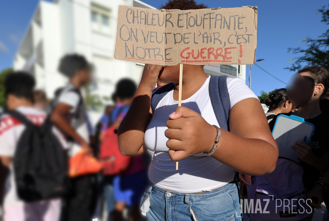 Des centaines d’élèves de La Réunion ont protesté contre la chaleur dans les classes, qui les empêche de se concentrer et de suivre les cours dans des conditions normales. La hausse des températures n’est pas le fruit du hasard ; elle résulte d’un manque de volonté politique pour limiter le réchauffement climatique. (Photo photo Sly/www.imazpress.com)