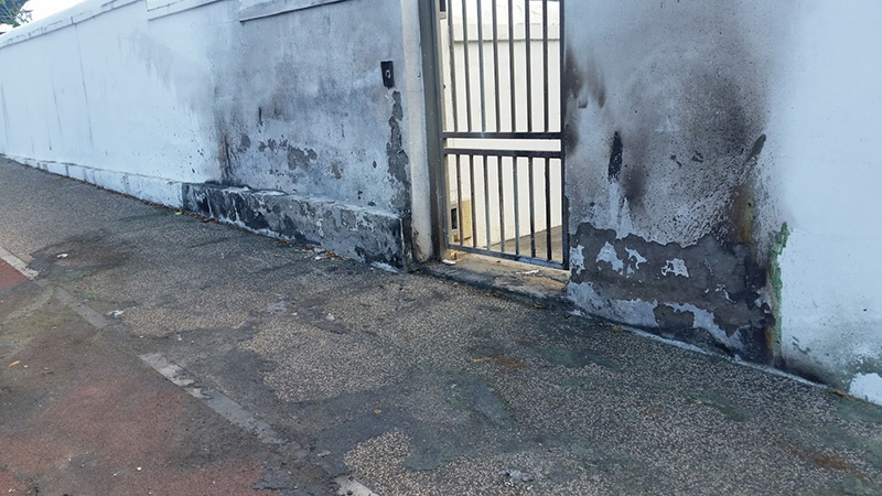 Comme tous les Possessionnais ont pu le constater, les traditionnelles nuits sans lumière ont pris un aspect innovant dans notre commune en se poursuivant depuis plusieurs mois. En effet, l'idée du Maire soutenue par la majorité municipale fait s'éteindre la majorité des points lumineux de la ville pendant une longue période de la nuit sous couvert d'arguments écologiques et économiques (Le mur d'une résidence où un vol a été commis - Photo D.R.)