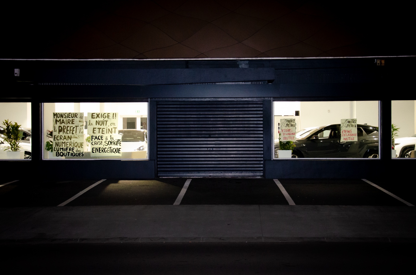 Quoi de plus plus simple que d’éteindre les lumières INUTILES ? Celles qui, la nuit, éclairent des vitrines de voitures ou de vêtements de magasins fermés depuis 18h… Ces magasins qui consomment de l’électricité pour faire consommer. Cela en pleine crise énergétique malgré le plan de sobriété énergétique du gouvernement.