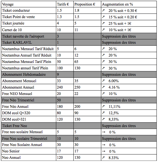 Ci-après l’analyse de la nouvelle grille tarifaire qui sera validée prochainement pour le réseau ALTERNEO qui devra rentrer en vigueurs avant le 31 décembre 2014, et pour comparaison les tarifs des différents réseaux urbains du département concernant les prestations les plus courantes :