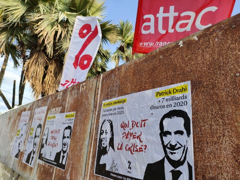 ATTAC Réunion se mobilise par une campagne d'affichage ce Dimanche 25 Avril : "Qui doit payer la dette COVID ?". La crise du Covid-19 a provoqué une crise globale d'une rare ampleur. Dans tous les pays, la récession économique et les dispositifs de relance font exploser les déficits et les dettes publics. En France, les mesures des pouvoirs publics ont entraîné une augmentation de la dette publique de 20 points de produit intérieur brut (PIB) en 2020. (Photos : Attac Réunion)