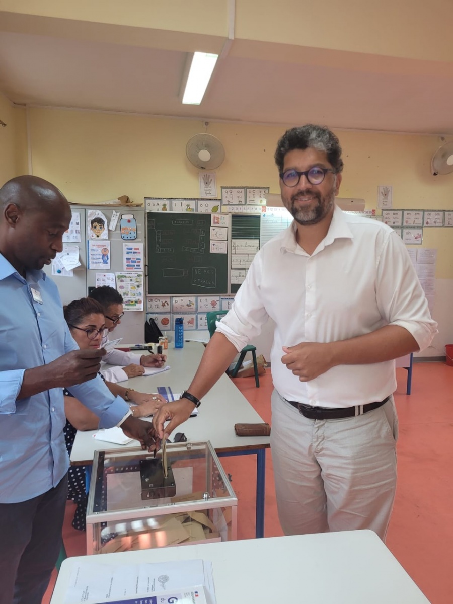 Giovanni Payet a voté ce dimanche 15 mars 2026 après midi à La Montagne. Il mène la liste de La Voix Citoyenne pour les élections municipales à Saint-Denis (Photo : DR)