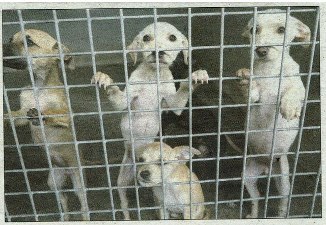 Quatre petits royal bourbon parmi des milliers d'autres chaque année, condamnés à mort et exécutés dans les quatre fourrières intercommunales de l'Ile (ici celle de St-André) pendant que les salles d'attente des cliniques vétérinaires sont squattées par des races à la mode importées à grands frais ; ceci alors que plusieurs centaines de petits chiens pays sont contraints chaque année "de sauter la mer pour sauver leur peau".