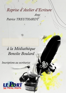 La Médiathèque Benoîte Boulard du Port, en collaboration avec la Ville du Port, remet en place son atelier d'écriture ouvert à tout public à compter de ce mardi 5 octobre 2010. Ainsi, tous les mardis de 18h à 20h, les amoureux de la Littérature, les poètes ou romanciers en herbe pourront peaufiner leur technique d'écriture, accompagnés par Patrice Treuthardt. Un poète portois auteur de nombreuses ?uvres parmi lesquelles : "kozman Maloya" (1978), "Ansanm-Ansanm pou in gran 20 Désanm" (1981), "Pointe et Complainte des galets" (1986), "Les Manèges de la Terre" (1995), "Pipit, marmay Le Port" (2006).