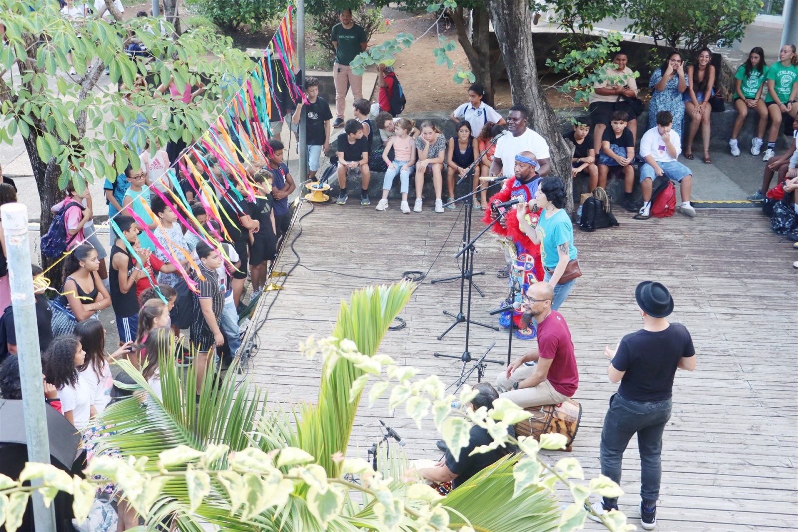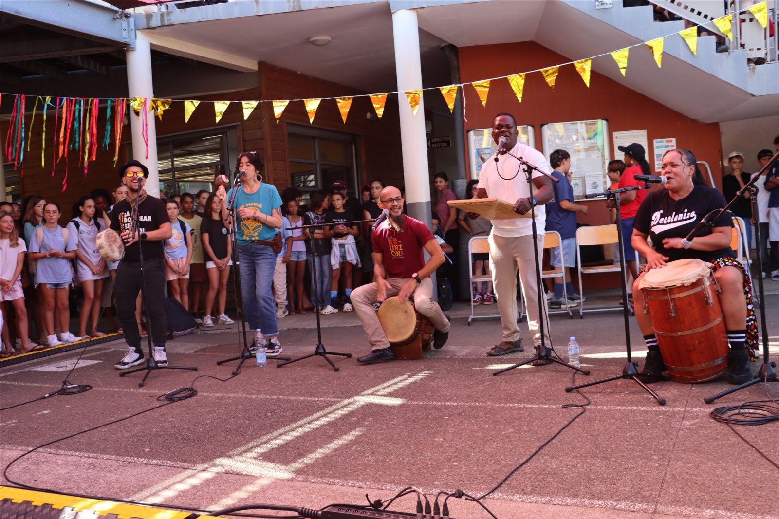 Plusieurs jeunes ont participé activement à cette expérience en jouant du roulèr, en chantant ou en échangeant directement avec les artistes, transformant les cours des collèges en véritables espaces de partage et de transmission.