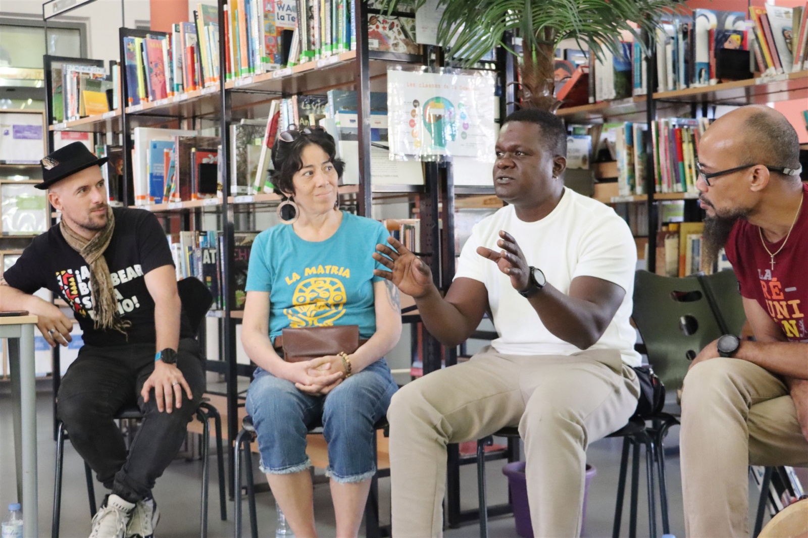 Le 14 avril, l’ensemble de l’équipe artistique du projet "Flamboyants", composée de Florient Jousse, Zélito Déliron, Jean-Frédéric Madia, Big Chief Juan Pardo, Ivelisse Diaz et Marién Torres Lopez est allé à la rencontre des collégiens lors d’une journée d’échanges organisée au sein des deux établissements.