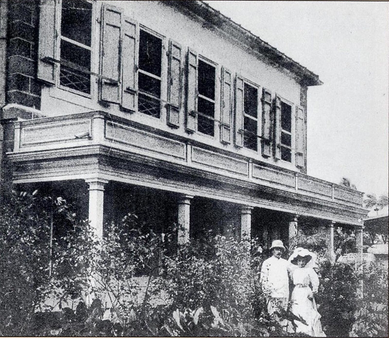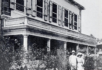 La varangue de l'ancienne façade principale de la case Bourbon, siège du Conseil d'architecture, d'urbanisme et de l'environnement (CAUE), a été récemment reconstruite. Le public peut d'ores et déjà la découvrir à l'occasion de cette dernière journée du patrimoine de ce dimanche 19 septembre 2010. Les travaux, financés par le Département de La Réunion, ont duré quelques mois. L'objectif était de reconstruire la varangue telle qu'elle était au début du siècle (Photo: collection privée).