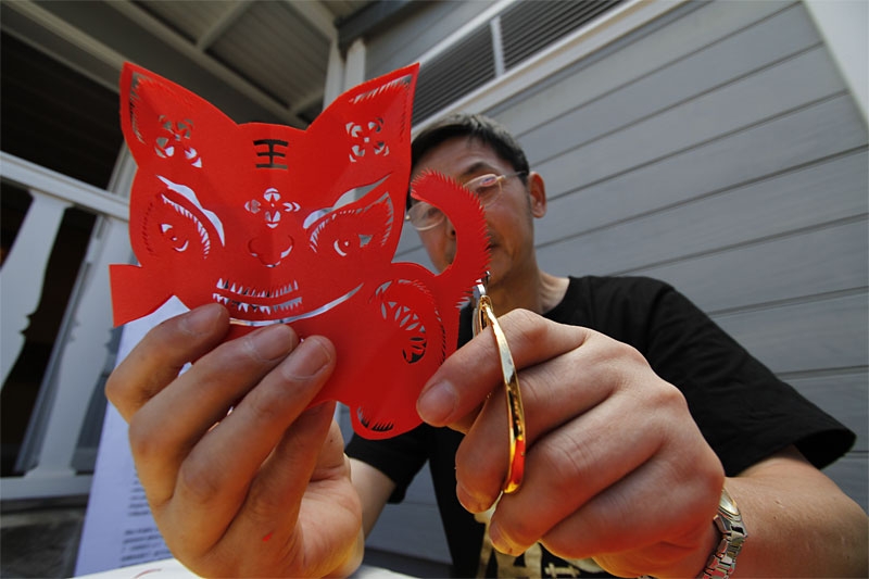 Et de la feuille de papier sortit un cheval... Grâce à la magie et à la poésie de quelques coups de ciseaux bien placés, depuis ce vendredi matin à la Maison Carrère (Saint-Denis) Maître Shen Songbai, virtuose de l'art de la découpe du papier, fait naître des animaux, des fleurs et différentes formes. Membre de la troupe Houbei, membre Shen Songbai propose aussi au grand public une initiation à l'art de la découpe. À découvrir jusqu'à 16 heures ce vendredi.
