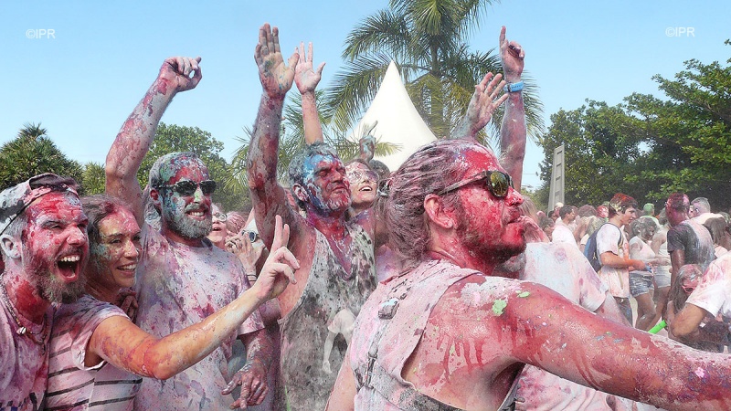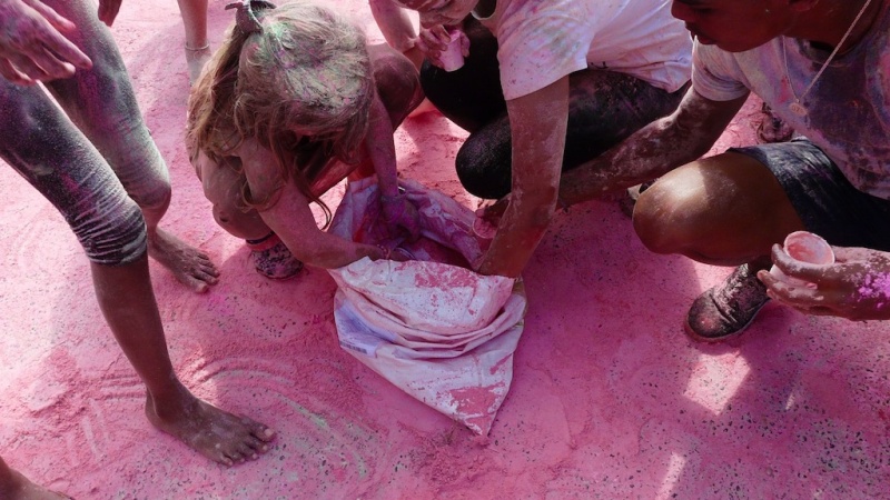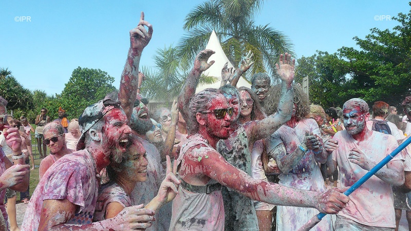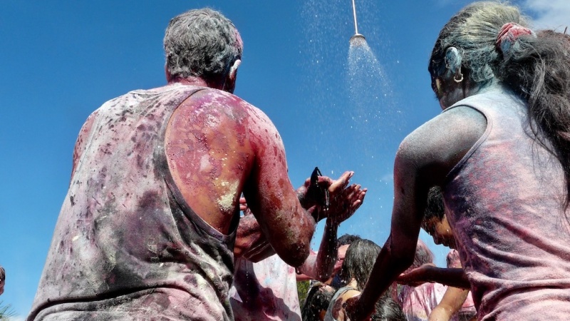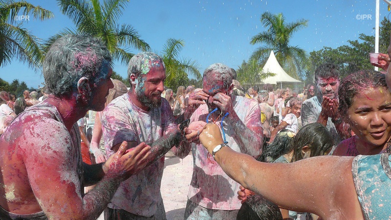 Les pigments que l'on se jette ont une signification bien précise : le vert pour l'harmonie, l'orange pour l'optimisme, le bleu pour la vitalité et le rouge pour la joie et l'amour.
