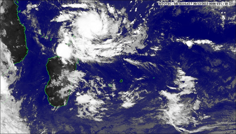 La tempête tropicale modérée se rapproche toujours de La Réunion. À 4 heures ce lundi 30 décembre Bejisa était située à 1 145 km au nord-nord-ouest des côtes de l'île (10.9 sur / 52.8 est). La tempête se déplace vers le sud-sud-est à la vitesse de 7 km/h en soufflant des rafales de vents enregistrées à 120 km/h. Bejisa devrait se renforcer au cours des prochaines heures et atteindre le stade de cyclone ce lundi et celui de cyclone intense ce mercredi. Selon Météo France, le réveillon du nouvel an ne devrait pas être perturbé par le phénomène. La situation météo devrait commencer à se dégrader sur l'île à partir de jeudi, ajoutent les météorologues (Photo http://www.meteo.fr/temps/domtom/La_Reunion/)