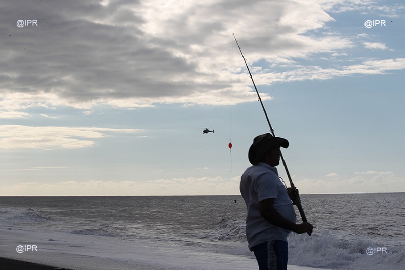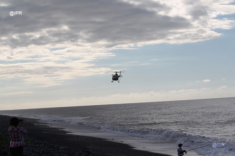 16h00 : Depuis le milieu de l'après-midi l’hélicoptère de la gendarmerie survole lentement la zone où ont été retrouvé le débris d'aile et le morceau de valise. Il fait parfois du surplace et un gendarme scrute la mer avec des jumelles.