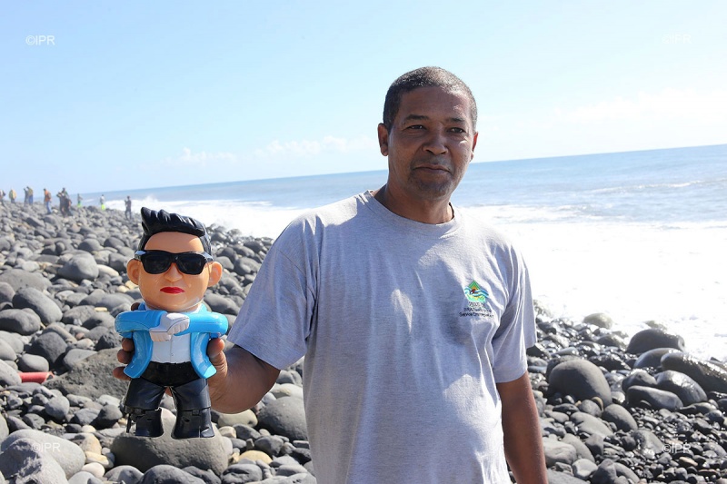 Il a demandé à ses collègues de se déplacer le long d'une ligne allant du bord de l'eau à la fin de la zone sablonneuse et rocailleuse. Les chercheurs marchent les yeux rivés au sol. Ferrailles, bouts de tissus, papiers, cartons… déposent tout ce qu'ils trouvent dans de grands sacs poubelles. Parfois les trouvailles sont plus intéressantes comme ces bouteilles d'eau minérale où figurent des idéogrammes (plusieurs de ces flacons ont été trouvés ces derniers jours). Parfois également les découvertes sont plus étonnantes "J'ai trouvé un objet qui ressemble à un jouet chinois. C'est peut-être la mer qui l'a rejeté" s'exclame Benjamin Banon. Il montre une poupée en plastique à l’effigie de Psy, le chanteur sud-coréen interprète de "Gangnam Style". "J'espère que c'est le bon matériel. J'espère avoir trouvé des débris que les gens attendent" commente ce père de famille de 51 ans. "J'espère qu'en trouvant des débris il va y avoir un éclaircissement sur cette affaire, que les familles des victimes puissent avoir des réponses" reprend Gérard Agate.