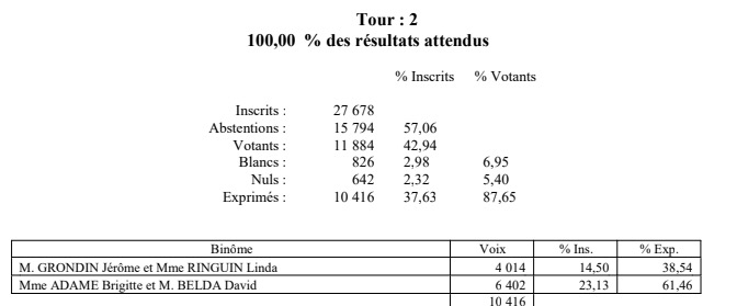 Le résultat du second tour :