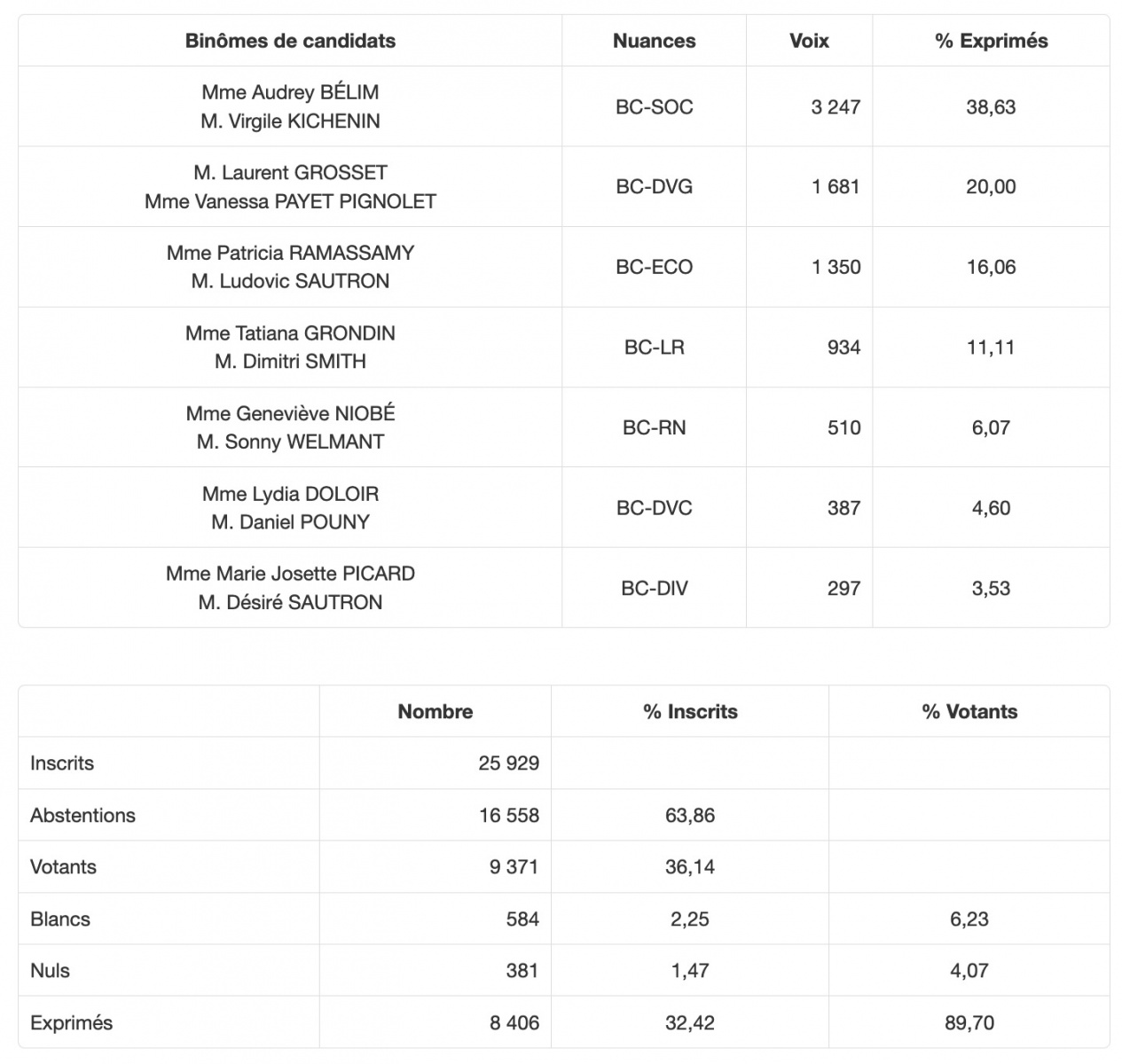 - Résultats du premier tour -