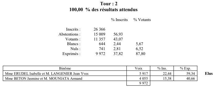 Sur le canton 2, sur la ville du Port, le duo Isabelle Erudel et Jean-Yves Langenier, ancien maire du Port, l'emporte largement avec. 59,34% des suffrages exprimés. C'est un score douloureux pour le maire du Port Olivier Hoarau, décidément malmené durant ces élections, alors que l'élu a réalisé moins de 5% au premier tour des régionales. Le second binôme composé de Jasmine Béton et Armand Mouniata réalise 40,66% des voix. Sur ce canton, 37,82% des électeurs se sont exprimés. (Photo d'illustration rb/www.ipreunion.com)