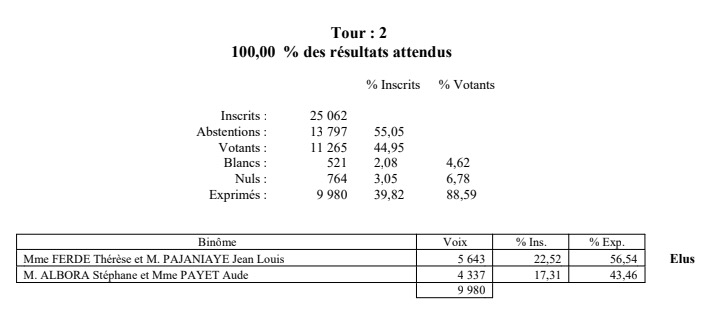 Sur le canton 20 (Saint-Pierre), le binôme Thérèse Ferde et Jean-Louis Pajaniaye est élu avec 56,54%. Stéphane Albora et Aude Payet font 43,46% des voix. Sur ce canton, 39,82% des électeurs se sont exprimés. (Photo d'illustration rb/www.ipreunion.com)